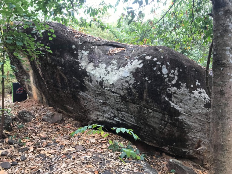 Sit start. Start low on crimps moving hands into groove. Traverse left, exit over overhang.