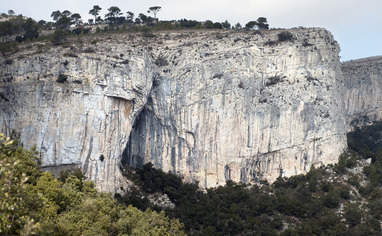 Pratdip is a small village in the southern part of Tarragona province. It is located approximately 6km inland from the coastal AP-7 motorway and is reached via the T-310 road. From the village follow the TV-3111 road towards the village of Llaberia. Approximately 280m after passing the Km-3 sign park in a small lay-by on the right-hand side of the road (P3). There is an ‘Area Privada de Casa’ signpost here. The lay-by is only big enough for two or three vehicles but there is a similarly sized space just around the next bend. From the first parking area follow a vague path (cairn at the beginning) up the wooded hillside and then leftwards, passing several more cairns. After about 150m the path joins a dirt track. Turn left and follow this for approximately 160m to where it fades out by a circular stone formation. Continue in the same direction, now on a small but reasonably well-marked path, keeping to the crest of the ridge, which offers magnificent vistas of the valley below. Roughly 10 minutes after leaving the parking area the path reaches the top of a steep gully. Descend this, joining a more prominent path coming in from the left after 20m, and passing both blue, and yellow/green paint marks on the rock. There is an old fixed rope on one slightly tricky section. At the bottom of the gully there is a small signpost with information about climbing restrictions in the area. Turn right here (facing out) and follow a path along the foot of some impressive walls. There are several routes here, but this part of the cliff falls inside the year-round bird-ban zone. Approximately 80m from the base of the gully the path splits: take the right fork (blue paint marks) continuing along the foot of the wall and passing more ‘banned’ climbs. About 250m from the gully another restriction signpost is reached: this is where the sector begins (20 mins).