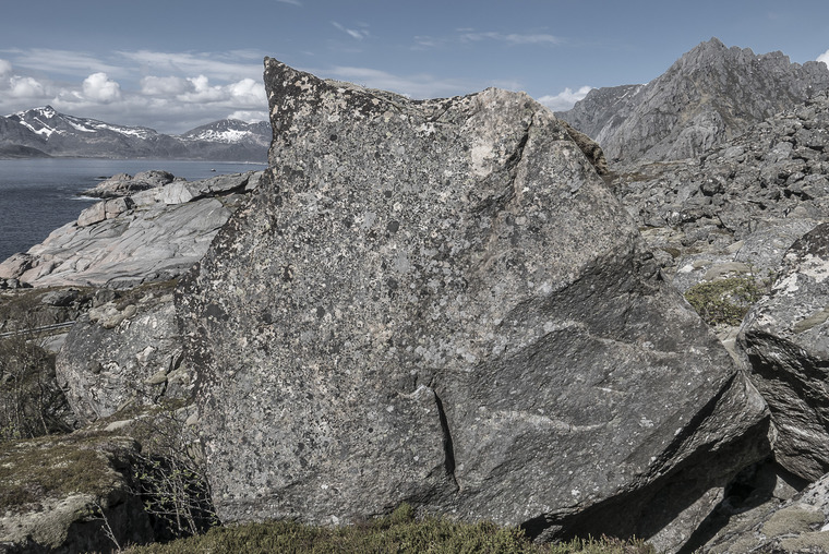 Sit start from block and follow the leaning arête. FA, Jonas Paulsson, 2015.