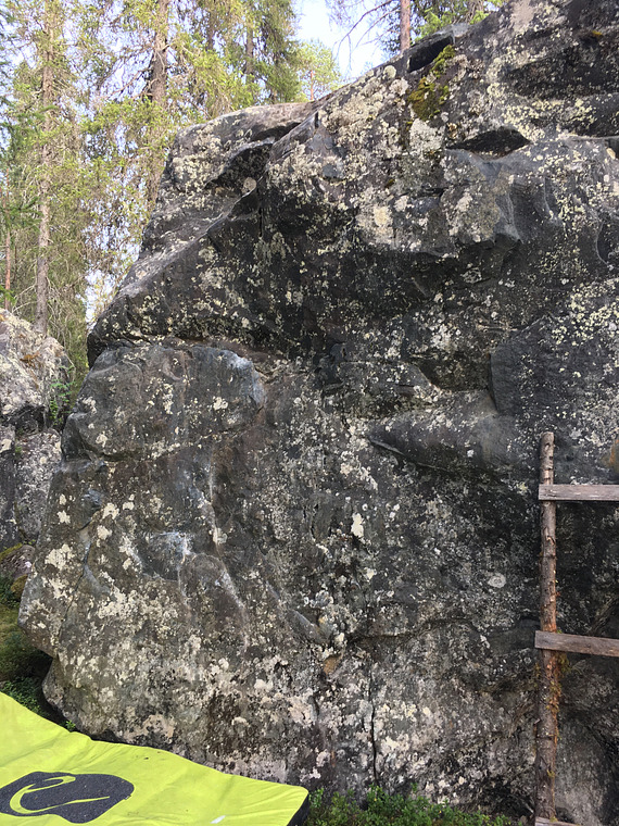 Sit start from the corner. Right hand on good sidepull, left hand behind the corner. Top out right side from the arete.