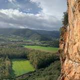The sector offers a variety of routes, ranging from easier ones for beginners to long, overhanging routes with big roofs for those seeking a challenge. The routes are on red limestone, known for being sharp and grippy, providing a great climbing experience.