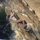 Highball with brittle rock. I got a splintered hold thrust into my forehead. Beware..
