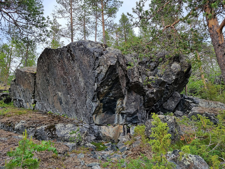 Lähdössä molemmat kädet samalla otteella keskellä negatiivista osuutta. Reitin alla oleva pieni lohkare ei kuulu reittiin