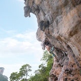 Phranang Beach is a classic climbing spot in Railay, with overhangs and slabs on spectacular rock formations. Pioneers like Kurt Albert have left their mark on this rock. The nearby Defile, accessible only at low tide, offers a unique climbing experience in a rock canyon surrounded by water.