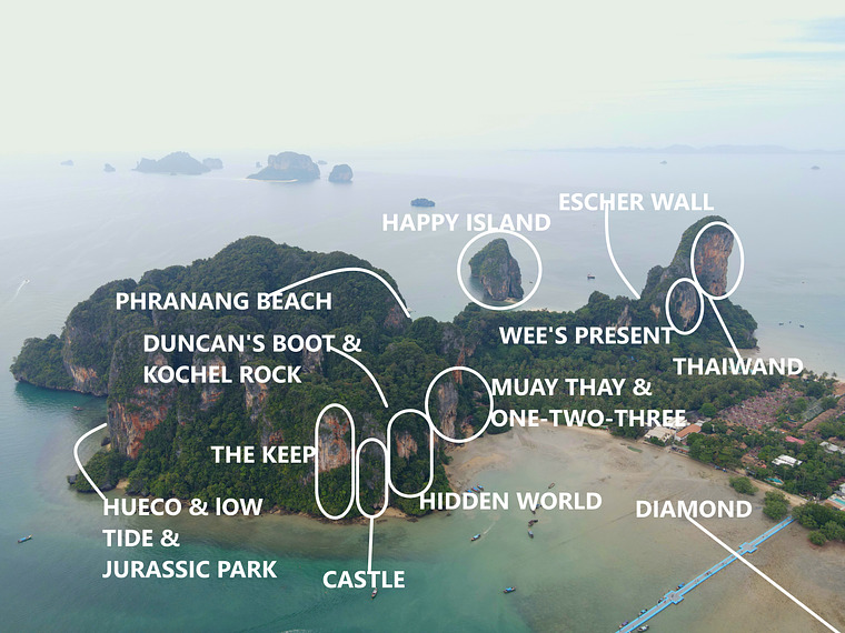 ALL DAY: "Thaiwand Wall", Wee's Present", "Happy Island", "The Defile" "Phranang Beach", "Muay Thai", "One-Two-Three", Diamond Cave", "Duncan's Boot", "Hidden World", "Kochel Rock", "Coco Wall", "Beach Corner".