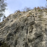 Purely winter crag, of typical vertical yellow and gray limestone characterized by flares and resistance sections on notches.