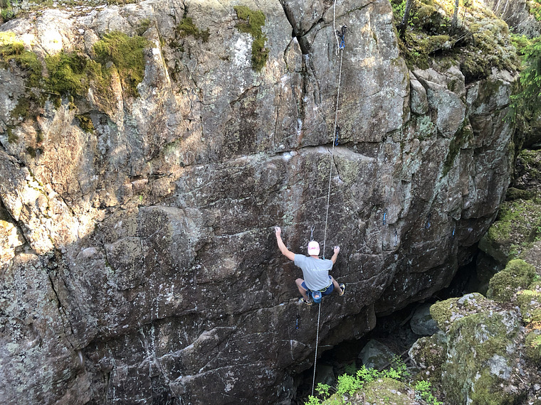 En toppenled, bouldertung som även kräver lite ork för att inte flafsa av i toppen.