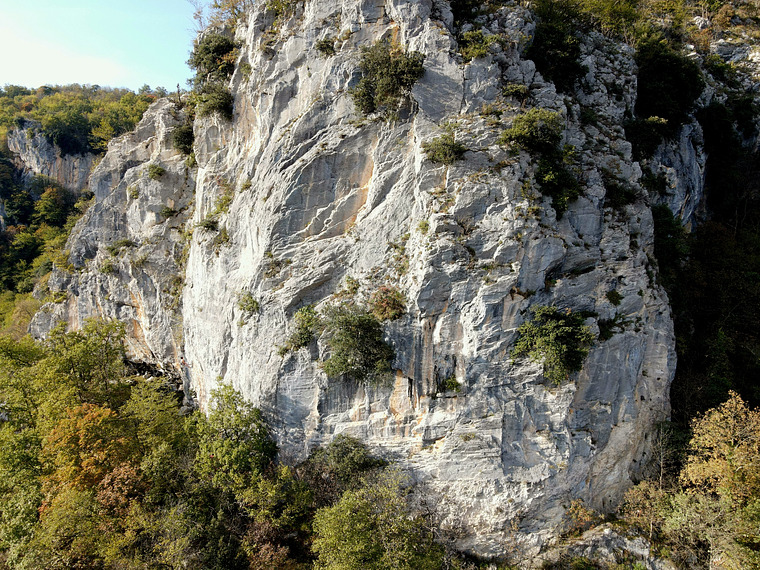 Powerful and technical wall on overhanging wall with great tufas. F.A: D.Bo