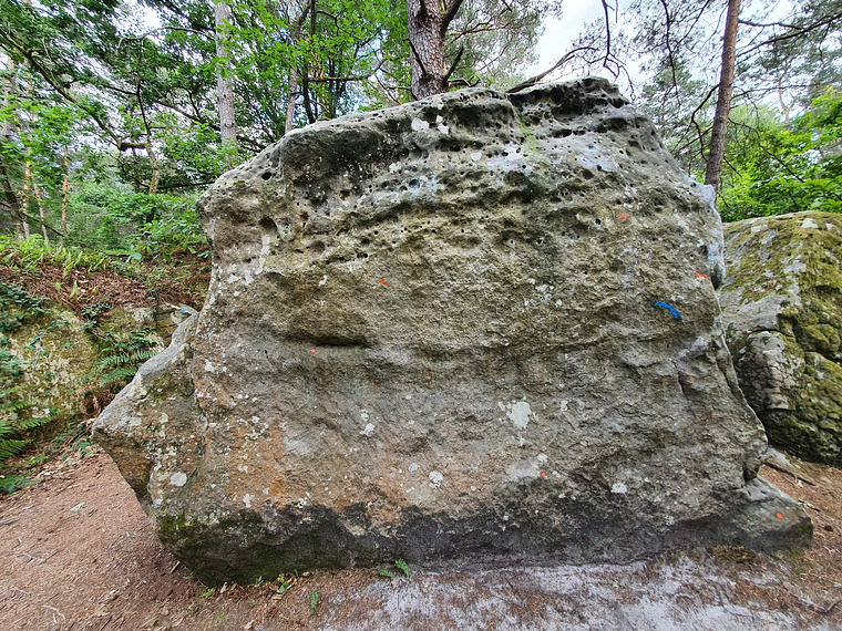 Orange 27. Climb around the boulder, follow arrows and "foot dots"