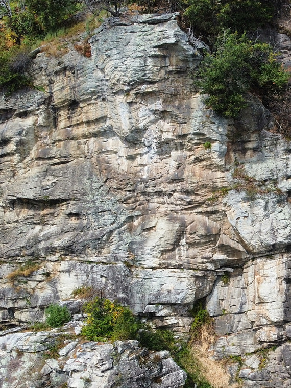 Distinctive light-colored wall with distant pockets.