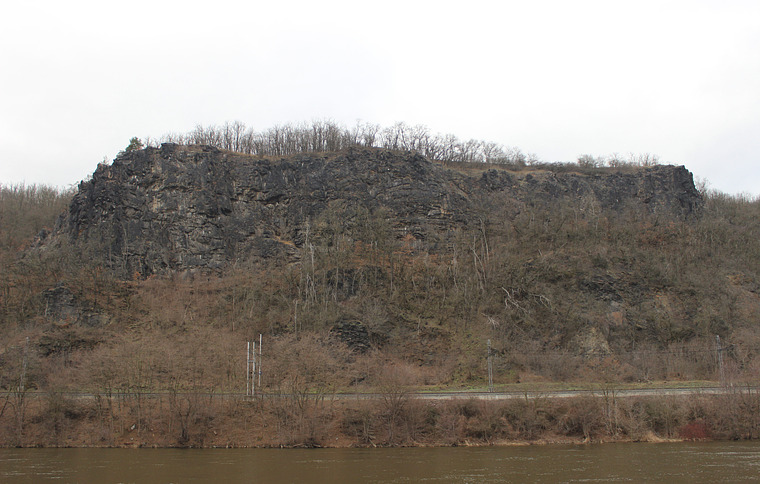 Vhloubením a výše po jeho levé straně do místa, kde se vhloubení strmě zvedá (skoba). Stěnkou vlevo (skoba) na plošinu. Krátkou spárou při levé straně vhloubení pod převis (soustava zabetonovaný kruh a 2 skoby), přes něj mírně vpravo na stupně. Po nich vlevo a stěnkou (skoba)