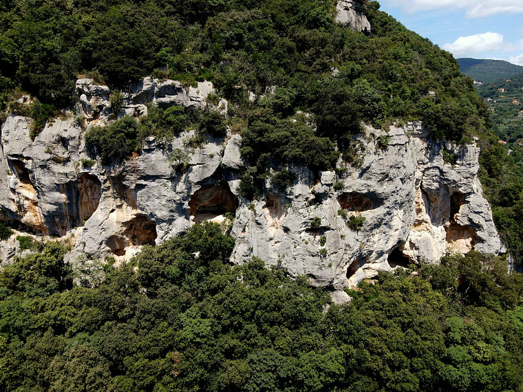 Vertical wall with pockets and crimps. Technical climb.