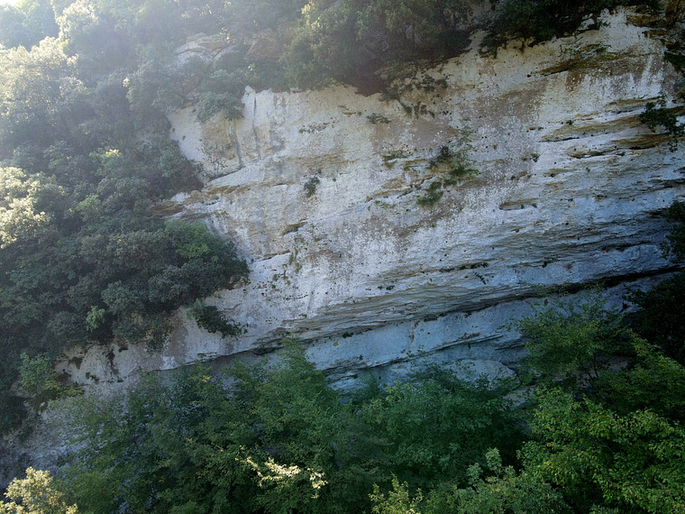 Intense line. Physical moves on overhanging wall, then last part on vertical with technical climb. F.A. : Cortese.
