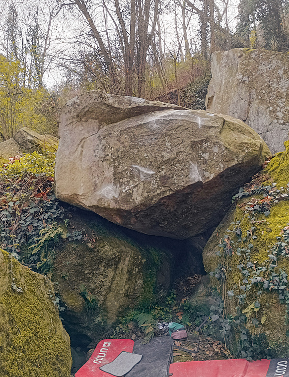 Come Tinelleros ma utilizzando il masso sottostante per i piedi