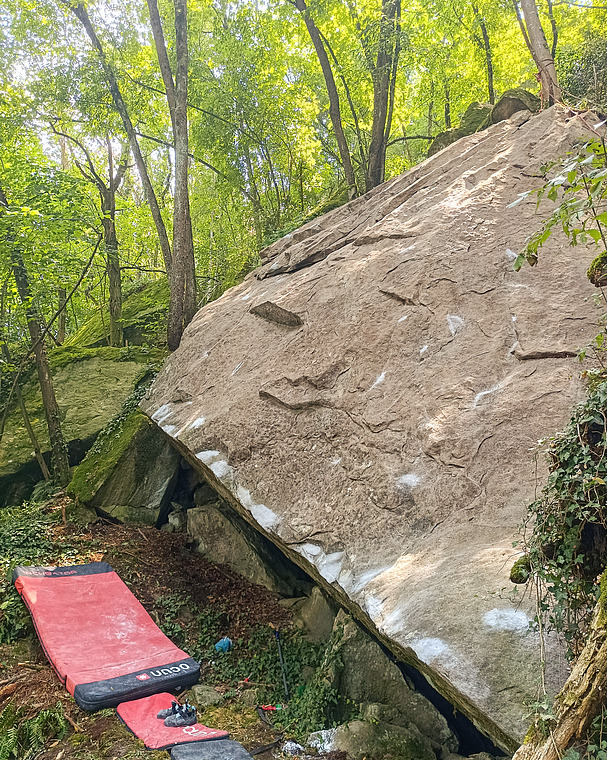 parte all'estrema destra del bordo, sit. Traversa su svase ed esce circa 1 m prima di Coast to Coast, in corrispondenza di un'evidente pinza trapezoidale sul bordo. Tricky exit, poi placca appoggiata alta ma facile!