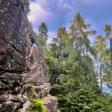 The sector features 11 routes, offering something for everyone: one grade 4 route for beginners, several 5+/6b climbs for intermediate climbers, and two 7b challenges for the more experienced. The porphyry rock provides excellent friction, with technical climbing on slabs and vertical walls, demanding precise footwork and mastery of high-friction slopers.