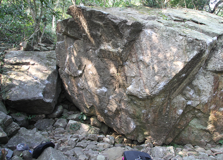 Start on positive holds in the obvious flake feature on the right side of the steep wall. Pull up from here to holds that are the diametric opposite of the start hold (e.g. non-existent micro crimps) before somehow gaining more positive holds high and to the right. Finish directly above these.