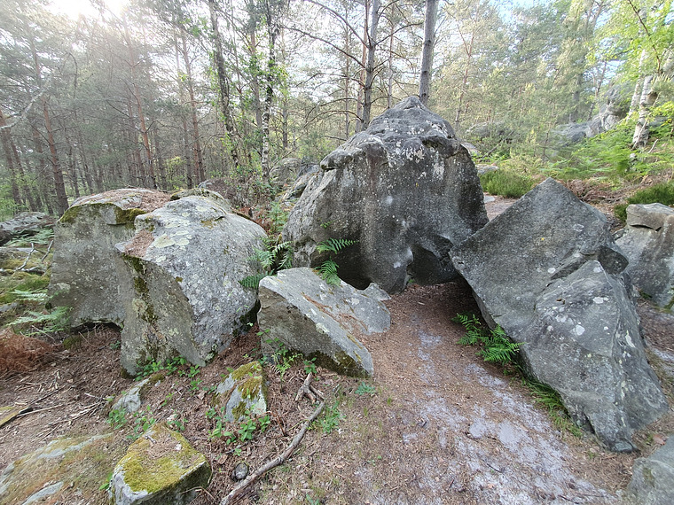 Yellow 1. First one of the yellow PD+ circuit. 1-59 long, and goes first the low path to the east, then back up the hill and from there back criss-crossing the hill towards Plumes aux Vent.