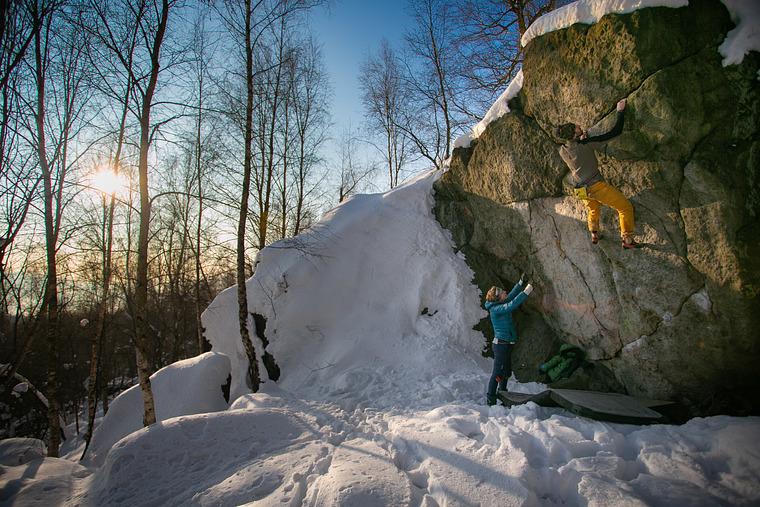 Sector Rocklands is located in a small stone field and a nearby forest. The sector offers 50 interesting problems up to 8A+, and can boast the shortest access in the whole Modřín area. If you park on a forest path underneath the Anglický parčík, you only need to walk less than 300m from the car to the sector.