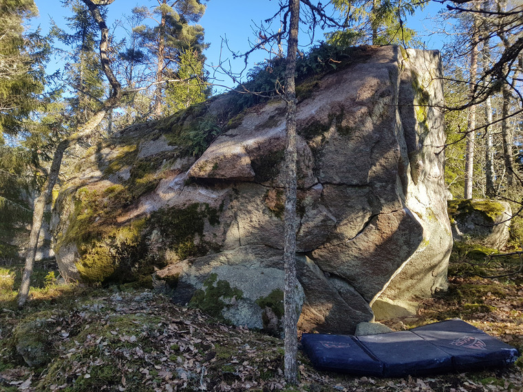 Sit start in the crack. Go for the jug with left hand then the right hand to a good sloper on the left arête (straight up from the jug). Move left hand to where the best sloper is on the top arête. Then right hand up to the sloper at the top, preferably from the right side, i.e. top of your hand facing right. Then move left hand to sloper close to your right hand and switch sides.