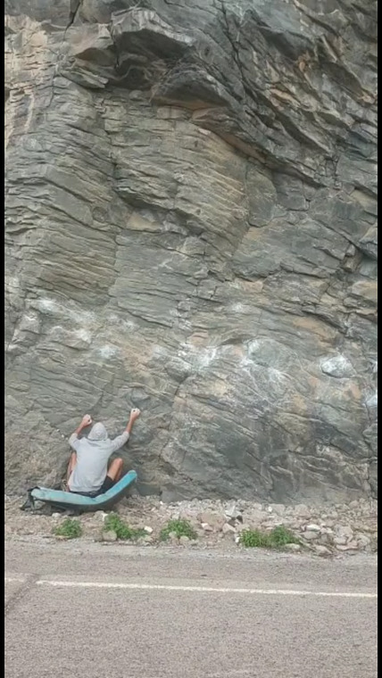 Very fun line, just said the top it's a compression move against the top hold, we are finding a couples of lines with this thecnichal moves and its so much fun.
