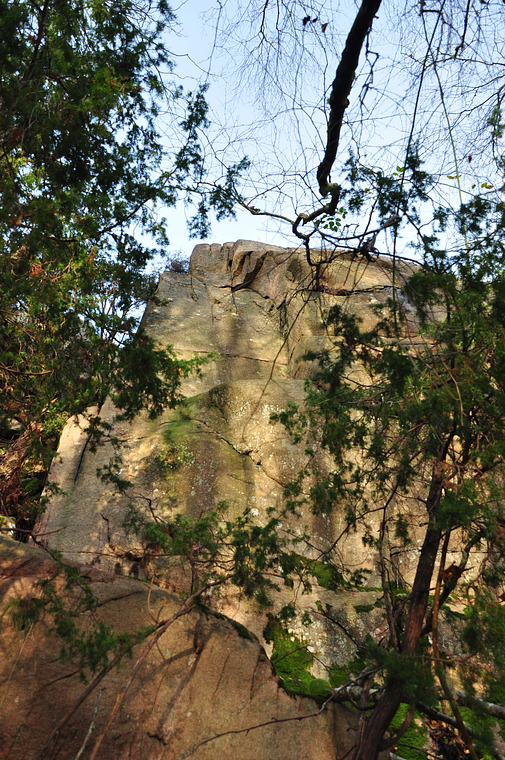 Följ vänsterkanten av klippan till hyllan, därefter diedret till toppen.