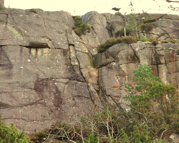 Handjamsprickan 1 meter innan diedersprickan längst till höger på klippan. Avslutning åt vänster på hyllan.