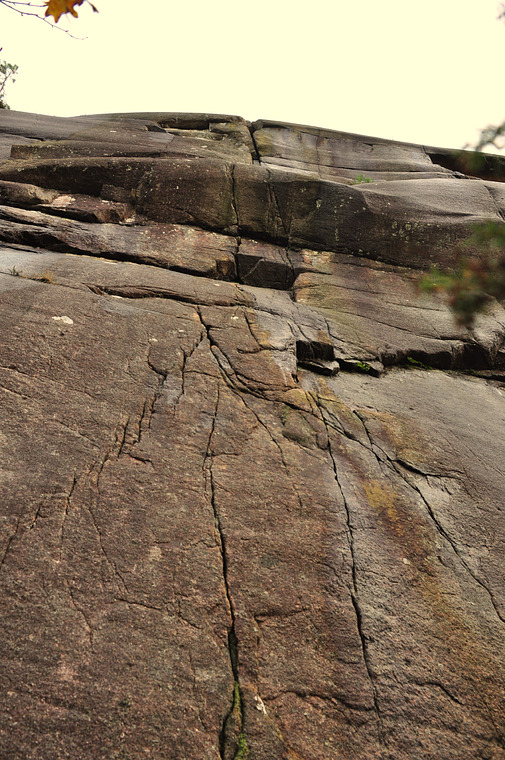 Via tunna sprickor och lister till överhänget, genom detta, sedan en tydlig spricka till toppen