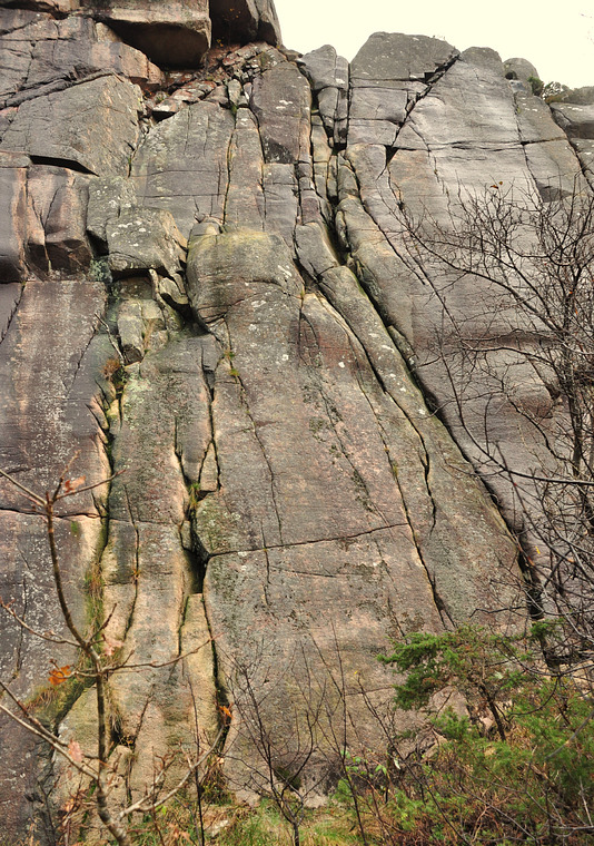 Samma start som Rönnhallick, till hylla därefter vidare i den bredare sprickan med tydlig dragning åt höger