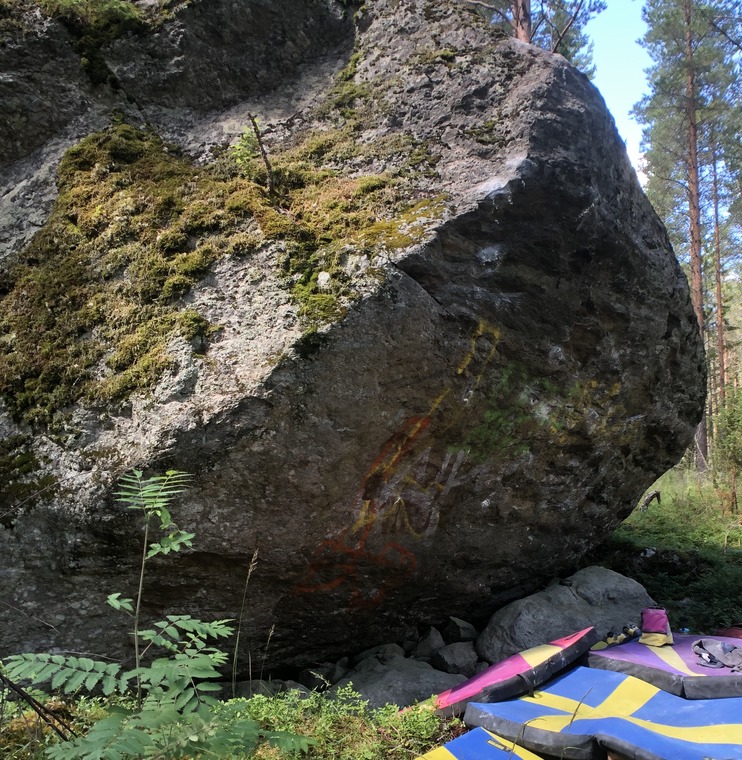 Dedikerad start på "grön" dubbelkrimp för att få in lite mer klättring. Gammal goding som blivit bortglömd. Skoj brant problem på krimpar och slopers. Kanske går det att få till en sittstart??