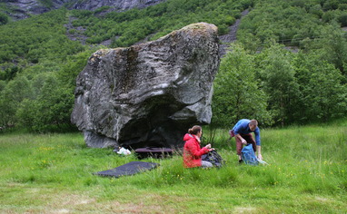 Det er ikke tillatt å gå over på naboens (Fram-Saure) eiendom uten samtykke fra dem. Gangbroen som går over elven skal ikke benyttes. Traséen for å gå over jordet er merket i rødt (se bilde), de to steinene som ligger på jordet er også den del av feltet. ALL bruk og ferdsel i området og på eiendommen skjer på eget ansvar. Det foregår aktivitet ifm drift av gården, og denne har alltid prioritet. Ta derfor kontakt med ansvarlig for klatrefeltet om dere lurer på noe.