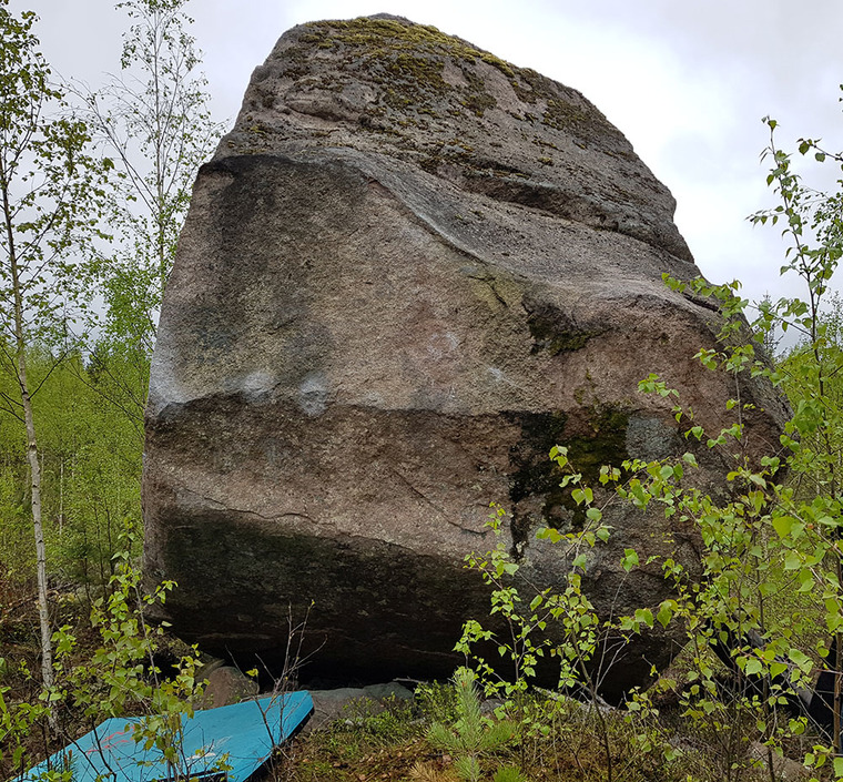 Stand start with left hand on left arête and right hand on sidepull crimp far right.