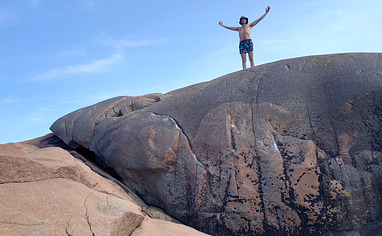 Fin holme med en drös lättare problem och några lite hårdare. Gosig röd granit som lättast nås med båt eller dylikt.