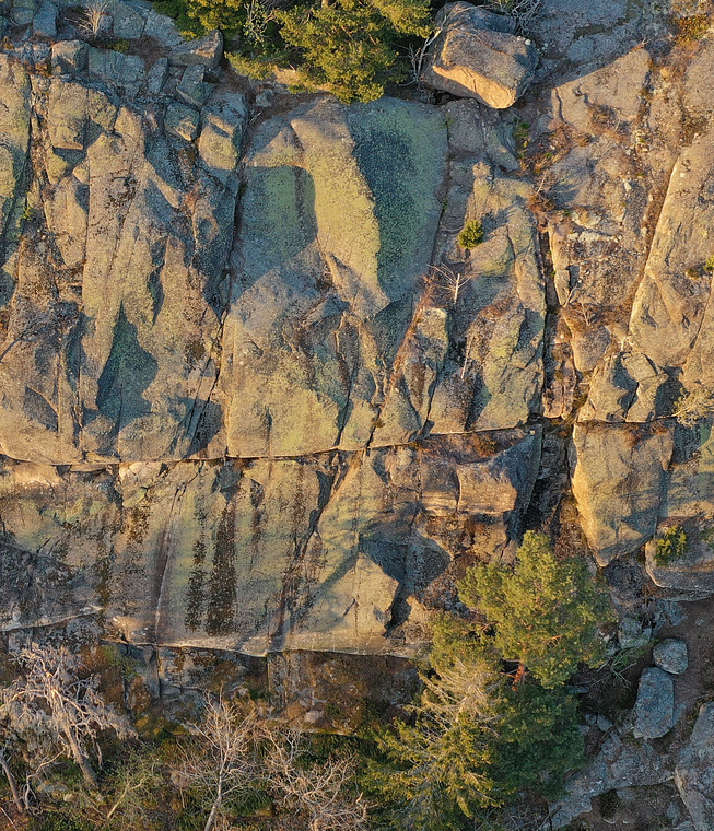 Går upp till diedret/hörnet och fortsätter rakt upp längs sprickorna.