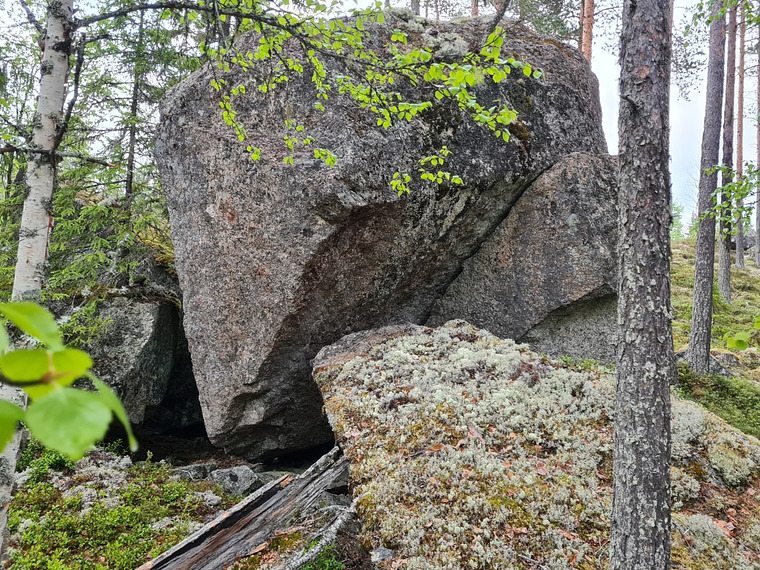 Sittstart med händerna i sprickan. Följ den ut och toppa ur på stenen. Highball.