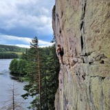 A highly popular crag for sport climbing, beautifully situated right next to Lake Lilla Vrången. The cliff is considered top-tier in Sweden for sport climbing with its high-quality reddish granite.