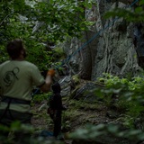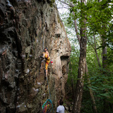 This overhanging 12 meters high and around 70 meters wide crag is easily accessible and peacefully located in an urban wooded area next to a walkway about 1 km south of Skogås commuter train station. Sjötorpsberget has many well bolted easier and medium hard sport routes located side by side, which makes this crag suitable even when climbing various difficult routes. Many of the routes are quite sporty, overhanging and fun.