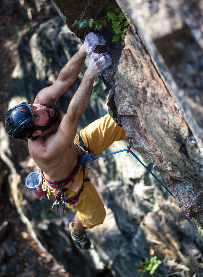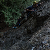 Solid and fine rock is divided into broken and sometimes loose parts. Anchors on the left part of the wall are quite easily accessible from above. Anchors on the right side are more inconvenient to reach.
