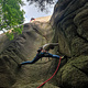 The approach is about 5 minutes and the cliff is on the right side of the road, a bit hidden behind trees with a small trail going in to the most popular route.