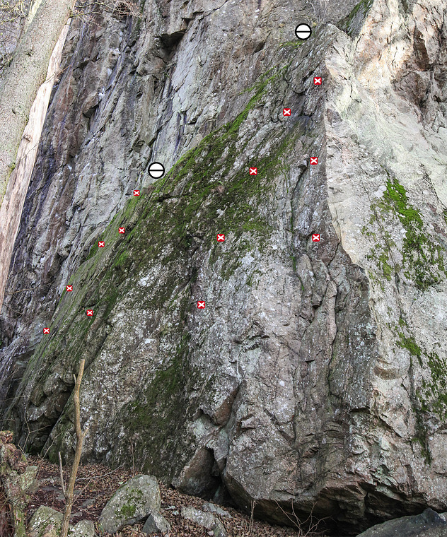 Hade hoppats på att detta skulle bli en utmärkt barnled, men "tyvärr" drar kruxet upp graden en del. Mycket trevliga grepp med kalkstenskänsla på slutet.