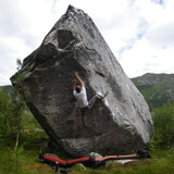 This area just has two boulders, but one of them hosts a bunch of really good problems, some of them among the best of Lofoten. The rock is sandstone like which creates a "Font feeling". The boulders are situated on a meadow/marsh along the 815 road.
