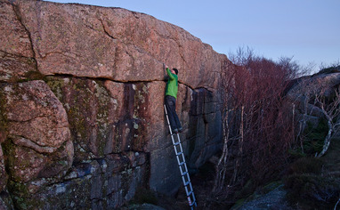 Ett fint område med många väggar, block. Fin utsikt ut över havet. Parkering bakom skolan. Nära till alla klippor.