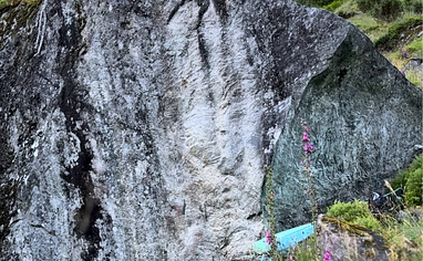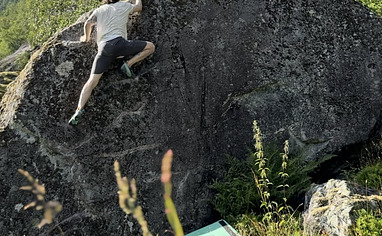 Boulders are visible from the main road in Esefjorden. Park and follow signs and red markings for the trail to Keipen. After about 200m along the trail road there is a road that turns right, follow that road and then left along the old hiking trail to Keipen. Look to your right and you should see a meadow with a small stone wall on the other side. When you are parallel with the large stones (bouldering spot up the hill) then cut across the meadow and over that stone wall into a small forest. Follow it up until you reach a river bed and keeping following that wash until you hit the stones. Be careful rocks can be loose and slippery.