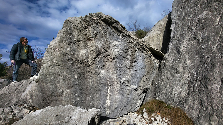 Sit start with two crimps, powerful move with the right hand to another crimp, then go left. F.A. Francesco Zandonai