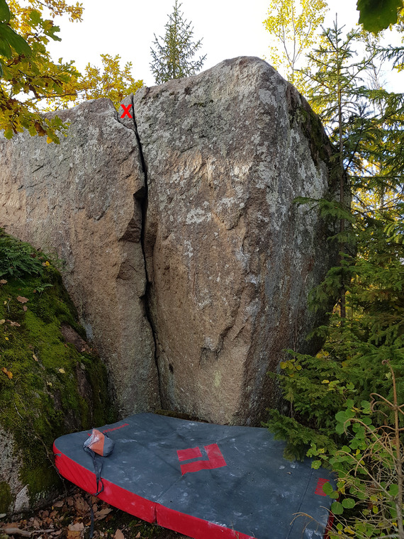 Sit start. NOTE! Don't use the marked rock, it is very loose and will move significantly.