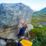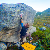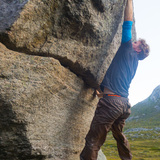 Småbakkan is an idyllic place in the high arctic. The rock is the white Ersfjordgranite which can be rough and sharp on the skin! One or several rock avalances and rock falls placed the boulders in the valley, and since they have been reworked by water and glacial processes. The style is typical technical granite bouldering, often with poor feet or handholds where body positioning and strenght is required. The boulders are very varied: all syles of all graderanges is available, from slabby no-hands challenges to steep bicepspulling.