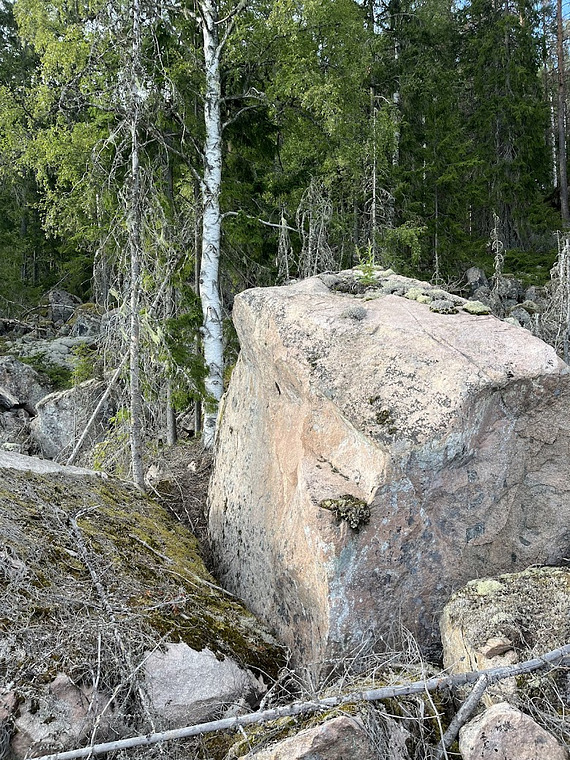 Riktigt fin. Starta med båda händerna på stora hyllan och klättra till toppen på stenen.