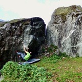 Boulders have nice shapes and features hundreds of crimps and slopers. Grades go from 4 to 8A.