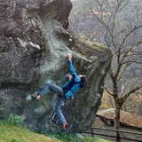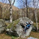 We are talking about a bunch of big boulders scattered in a chestnut grove that are really close to the car park (2-5 mins) and offer about 70 problems of various styles and difficulties. There are slabs and overhangs on a great gneiss that is quite different from the typical serpentine rock of the valley. This particular rock requires cold temperatures to guarantee a good grip, so Spriana is generally frequented during the winter.