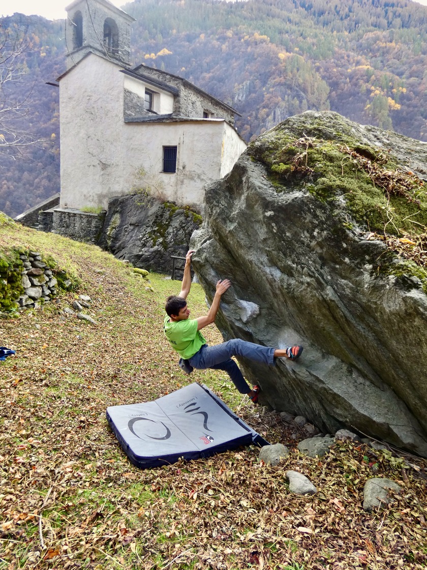 The boulder area of Spriana is well maintained by the municipality and it is suitable for families. There are picnic facilities and a nice playground close to the chestnut grove. You will surely enjoy a nice climbing day here.